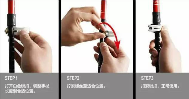 在徒步过程中,要根据平地,陡坡,下坡等各种情况,根据自己的身高分别调整好支架的长度。如果支架高度不适,不仅起不到分担负重的作用,还会在上坡下坡时导致失衡,跌落。