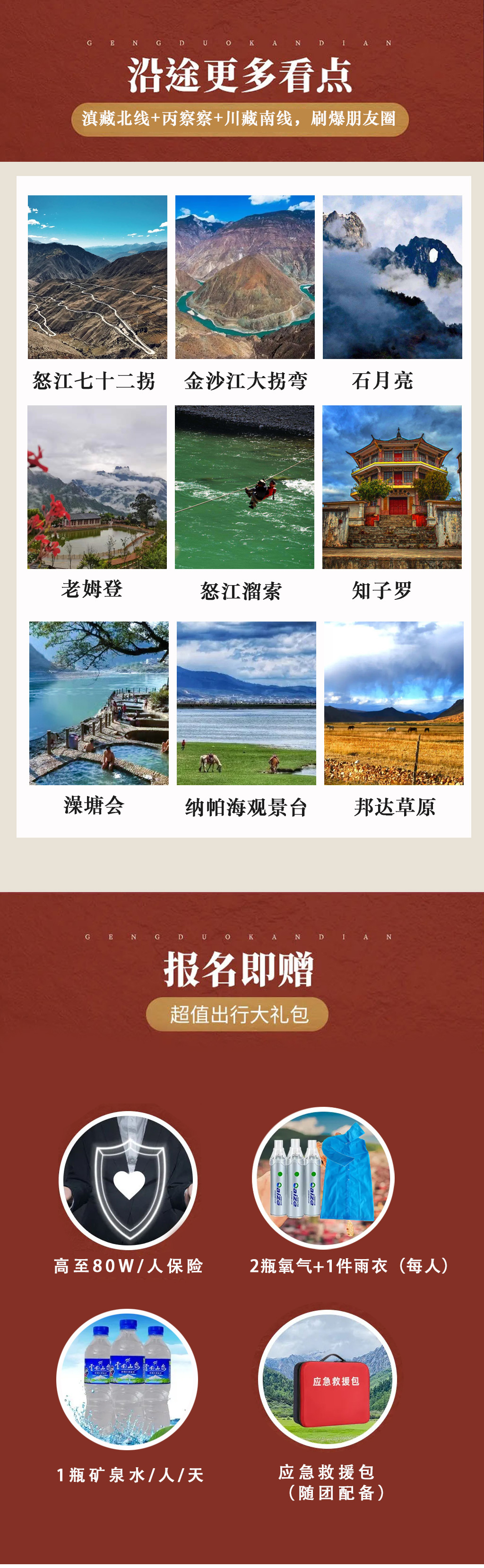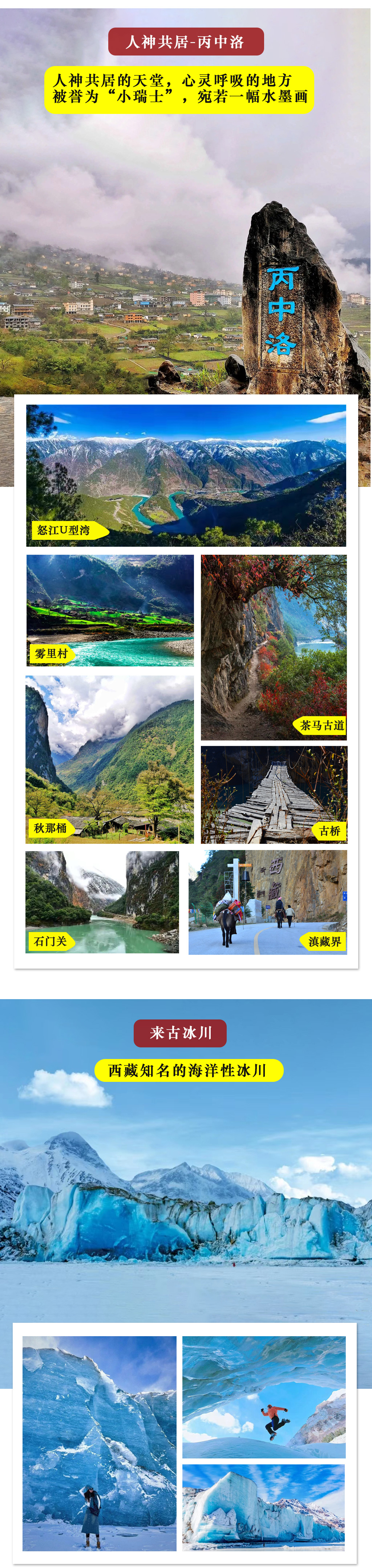 亮点:巴坡+普卡旺风光+丙中洛+怒江U型湾+桃花岛+贡当神山制高点俯瞰怒江U型湾