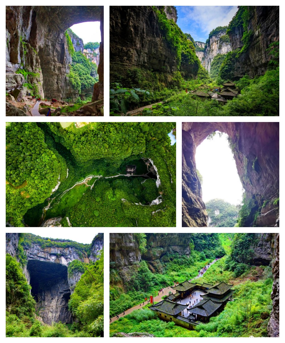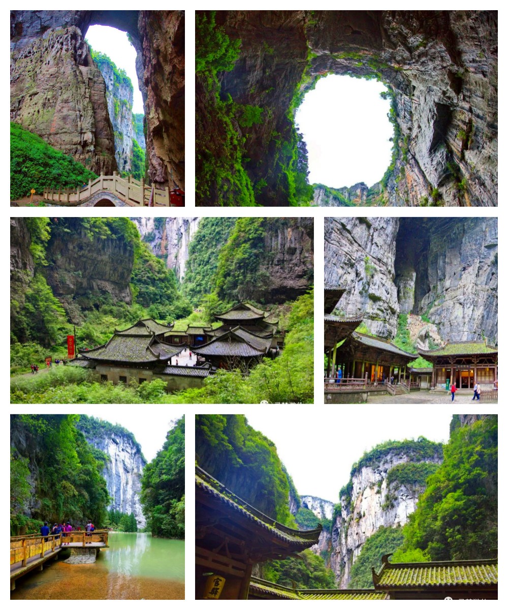 早餐后游览张艺谋2006年摄制的大片《满城尽带黄金甲》唯一外景地,07年入选世界自然遗产名录的【天坑.天生三硚景区】景区拥有世界上最大的天生硚群落,三座天然形成的石拱硚横跨在洋水河大峡谷幽深险峻的两个大天坑上,三座天然石硚相互映衬,构成一幅雄奇.壮丽 的图画.一峡.两坑.三硚.四洞.五泉形成景区独有的特色.