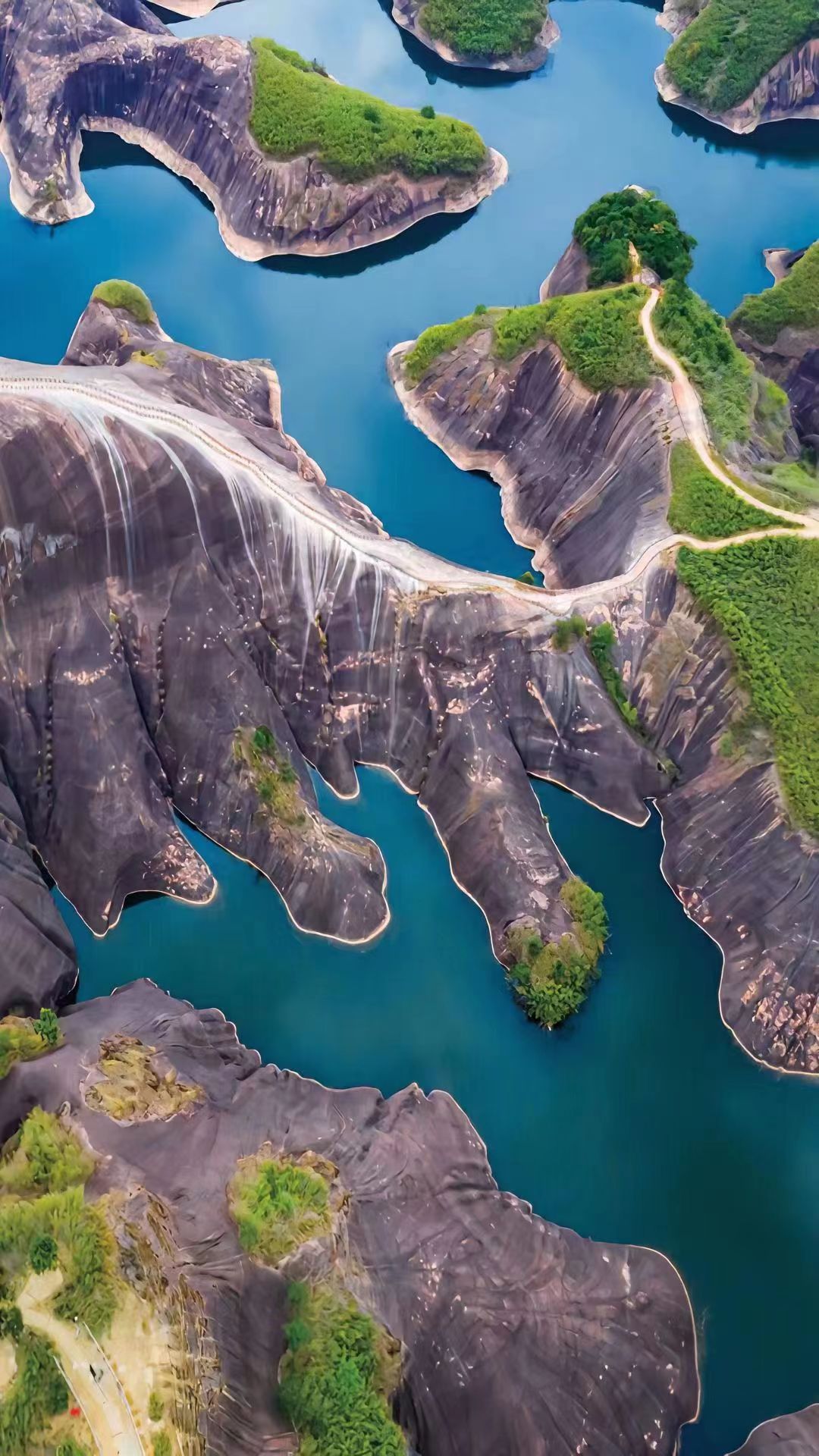 远山如黛,青山碧流,烟波浩渺,碧波如镜