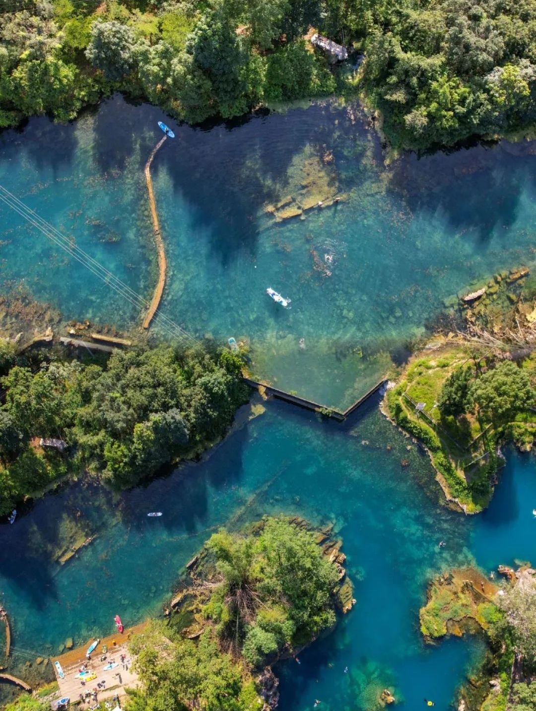 2022年,《航拍中国》第四季也来到了广西河池,对都安地下河国家地质公园进行了拍摄——“盛夏时节,看起来像海的颜色,很难不吸引人们飞身一跃”