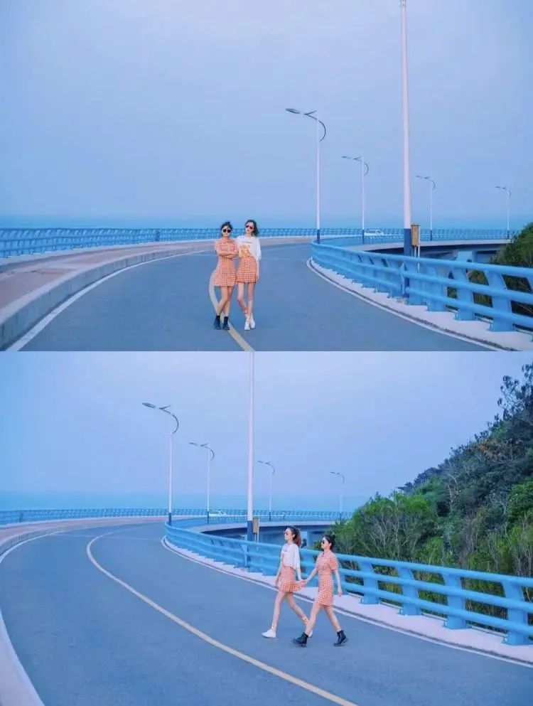 08:00 到达苏峰山停车场。可步行、租电动车( 参考20元/h)或坐接驳车(10元/人)浏览打卡6公里长的苏峰山环岛路,其中有两段蓝桥路拍照最为有特色。苏峰山是整个东山岛的制高点,一条蓝色的环岛公路藏在半山。伴着海风一路美拍,等风也等你。