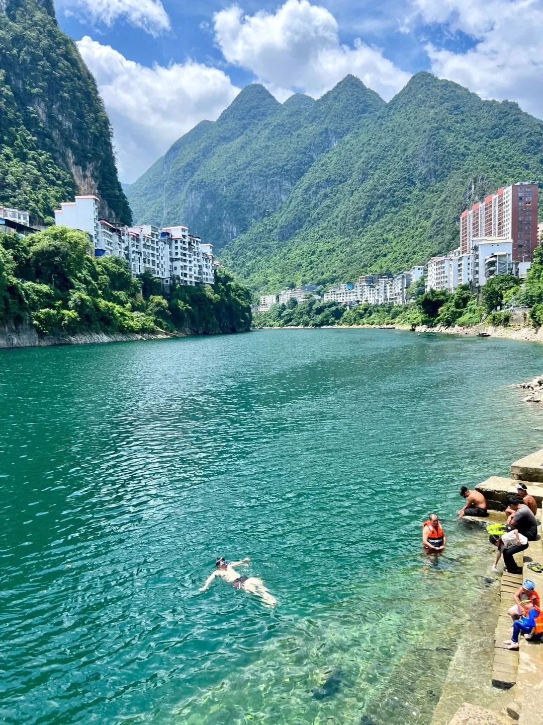 每到夏天就会有特别多的年轻人会来到这里玩浆板,清澈的水让浆板似漂浮在空中,特别神奇。
