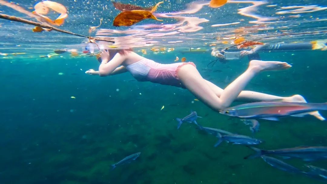 投喂鱼群,馒头饼干都可以跳水游泳潜水人体漂流等