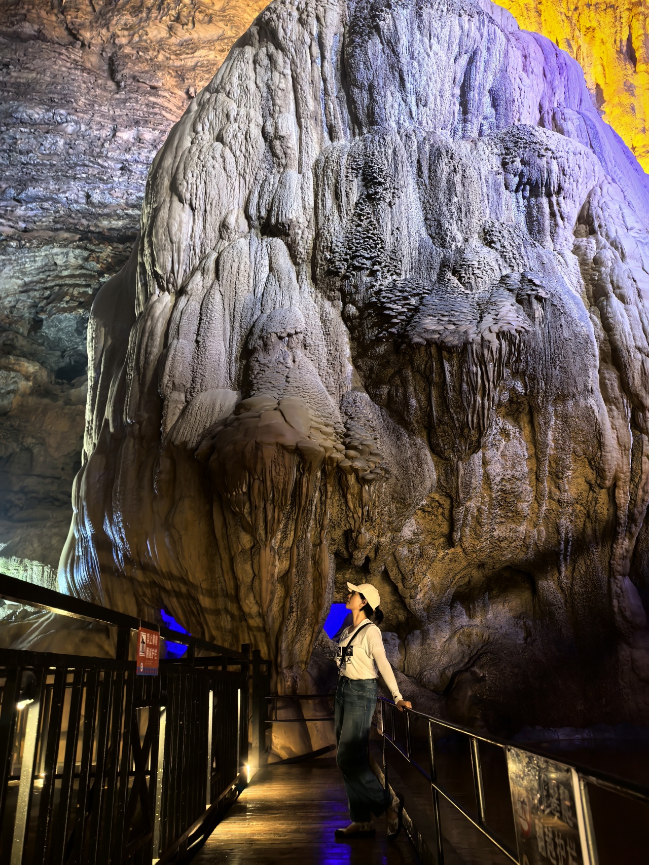 抬头仰望,钟乳石悬挂于穹顶之上,有的如巨柱擎天,有的似飞瀑直下,大自然的鬼斧神工令人震撼。