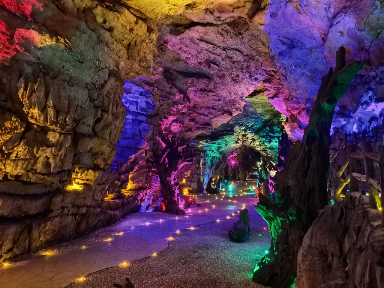 洞天盛境是国内罕见的总长约3公里的地下大峡谷,步入光怪陆离的洞天秘境,仿佛穿梭于时间与空间的裂缝之中。这里是明星同款打卡地,沿着曲折蜿蜒的栈道缓缓深入,演员王丽坤曾驻足的地方逐渐映入眼帘。