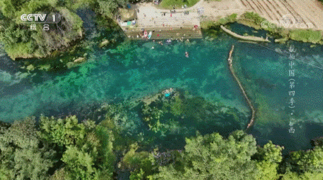 2022年,《航拍中国》第四季也来到了广西河池,对都安地下河国家地质公园进行了拍摄——“盛夏时节,看起来像海的颜色,很难不吸引人们飞身一跃”