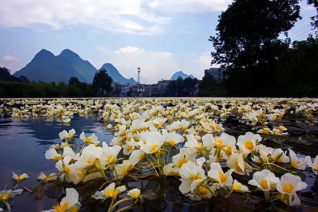 待到每年的4月末-10月就是海菜花的花期,成片的海菜花漂浮在水面,因而被称为会“开花的河”。