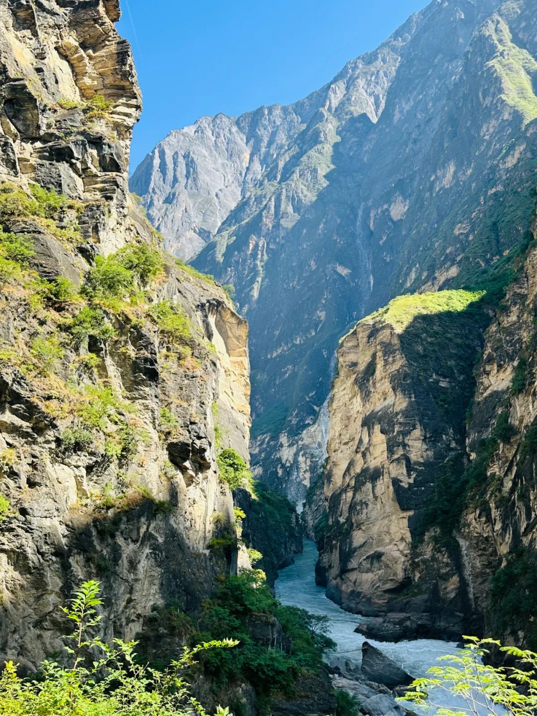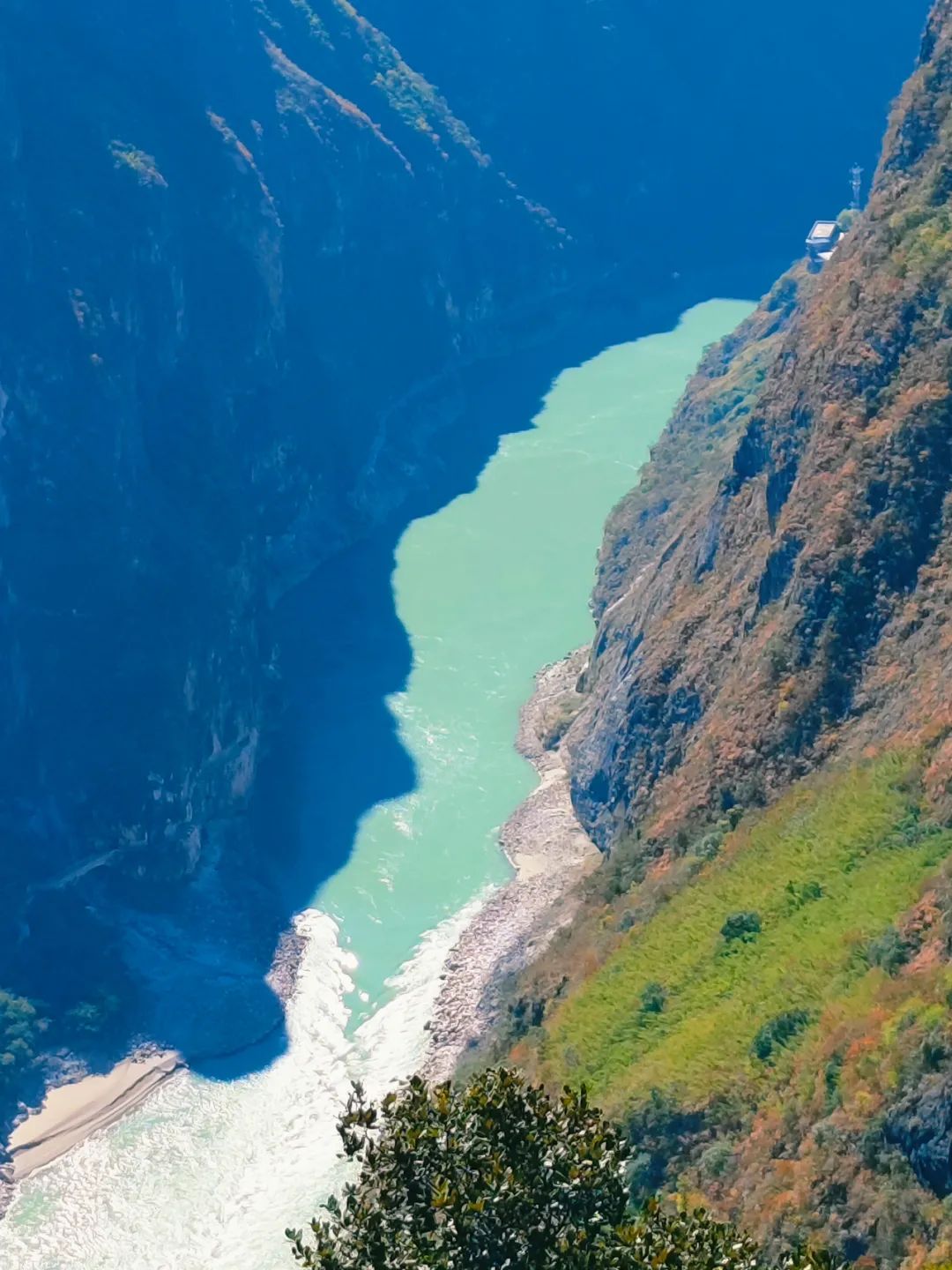 如画般的雪山耸立在两侧,深不见底的峡谷中,你可以站在距水面千米多高的地方,看江水在巨石间奔涌。