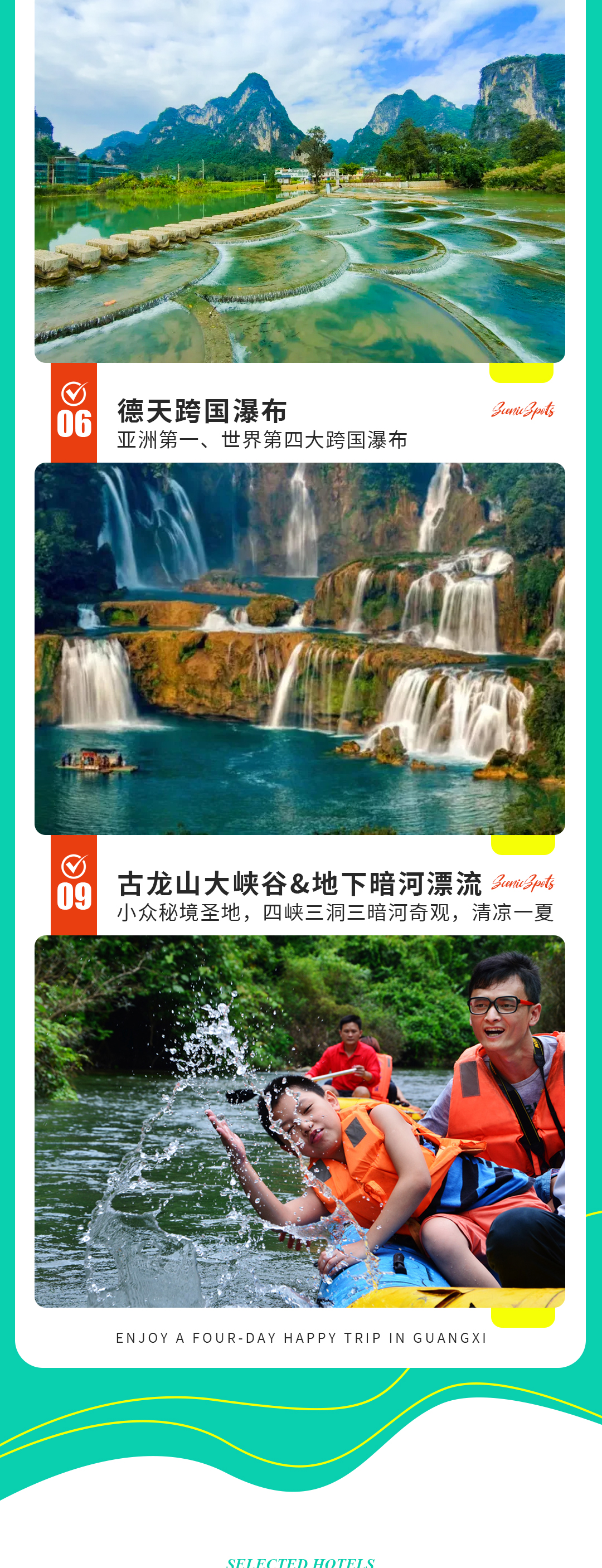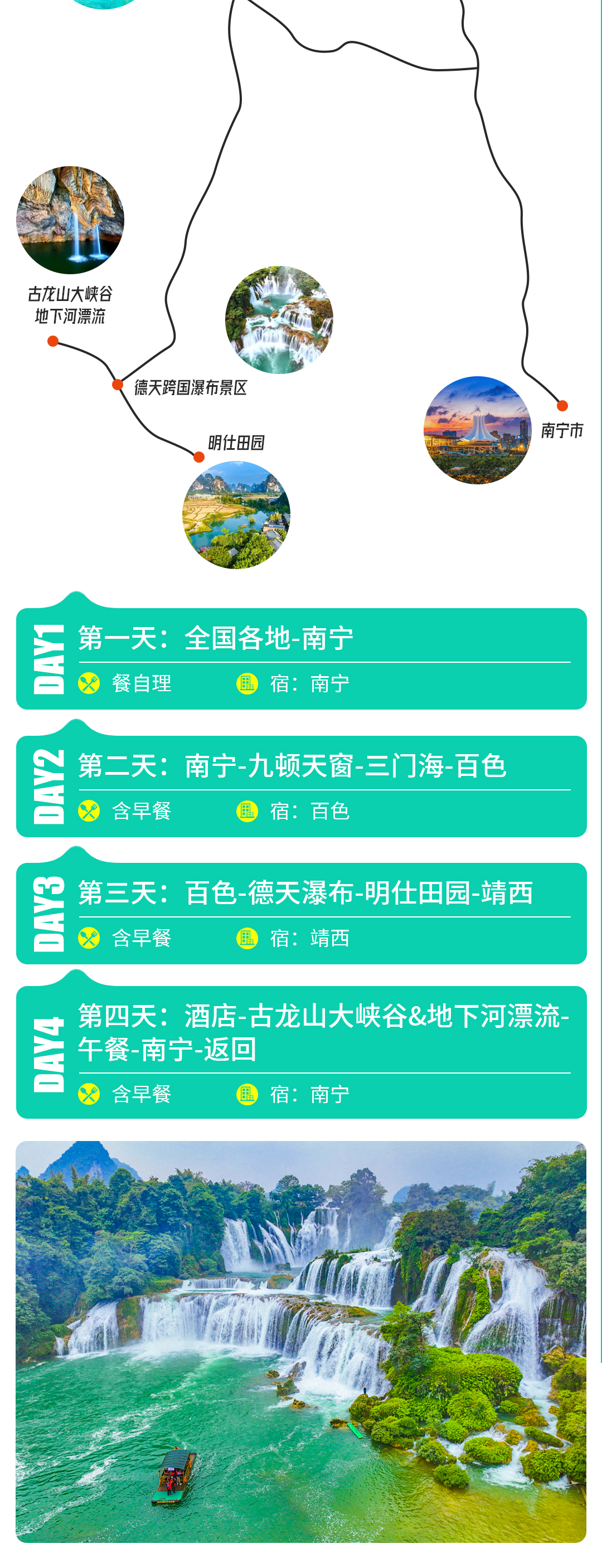 ·活动地点:广西德天瀑布、网红明仕田园、河池三门海、九顿天窗、古龙水大峡谷&地下河漂流
