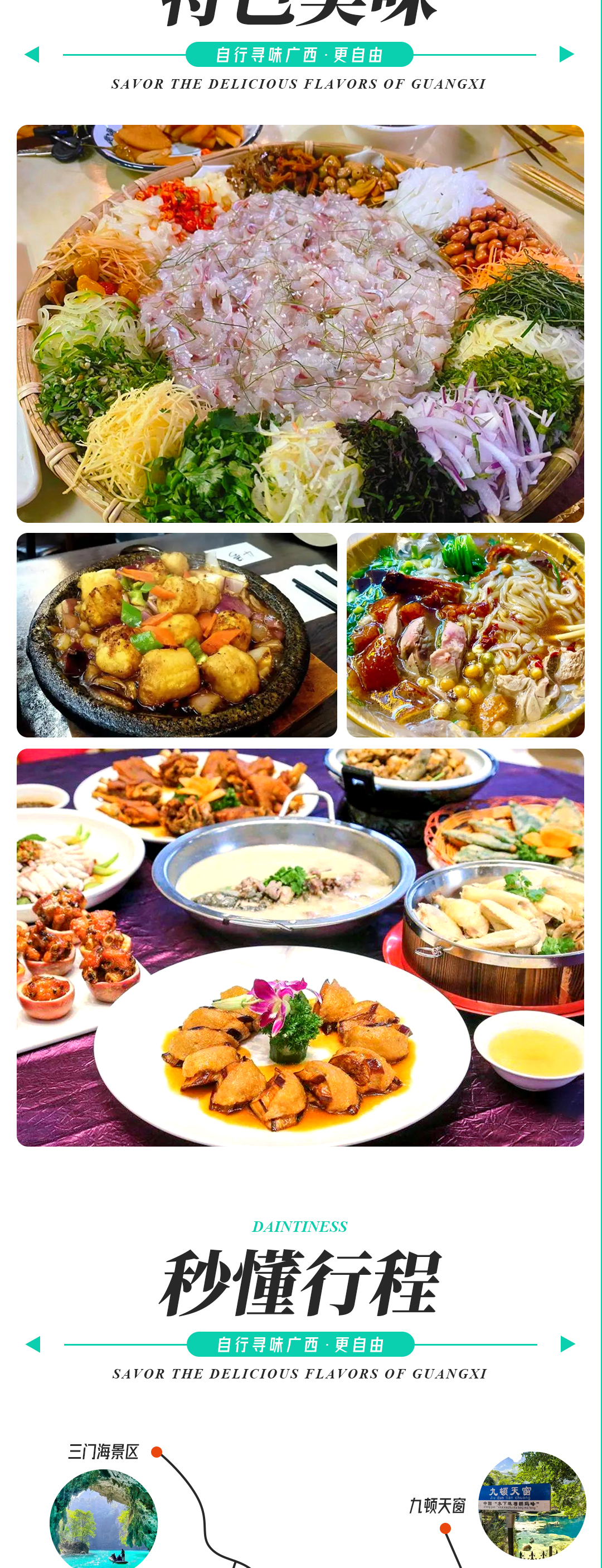 3.门票:德天瀑布大门票+接驳车,广西河池三门海景区门票,明仕田园门票,古龙山大峡谷门票
