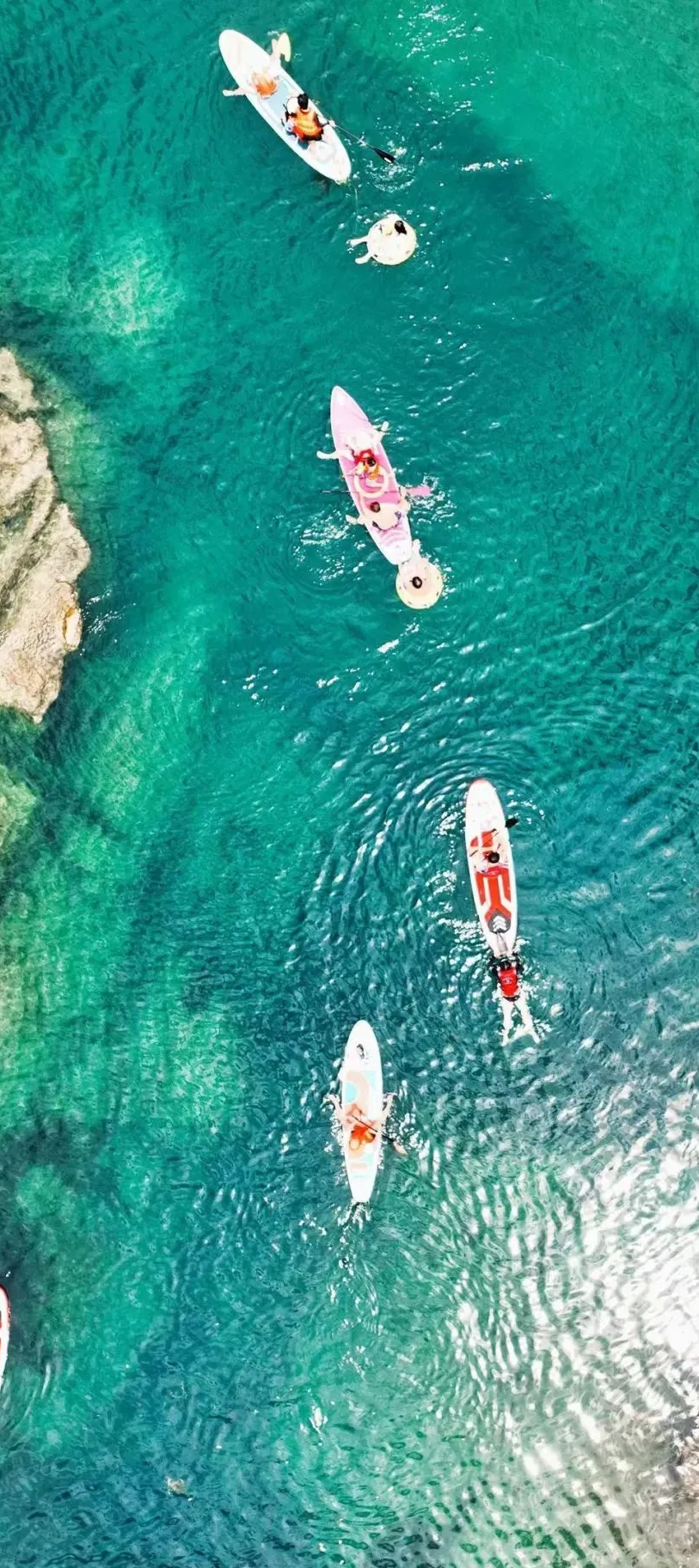 九顿天窗清澈湛蓝的水,可以租上一个浆板,近距离感受秀丽的水上风光,还有那在水中摇曳着曼妙身姿的“水下森林”。