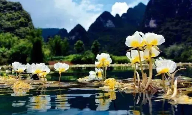 09:30 左右抵达后前往都安瑶族自治县吃早餐,早餐自理,然后前往观赏【澄江会开花的河】(可自费划船体验!海菜花受天气影响,所有开放程度、数量、颜色等均以实物为准,不保证百分百能看到海菜花,敬请谅解)。