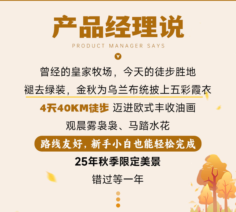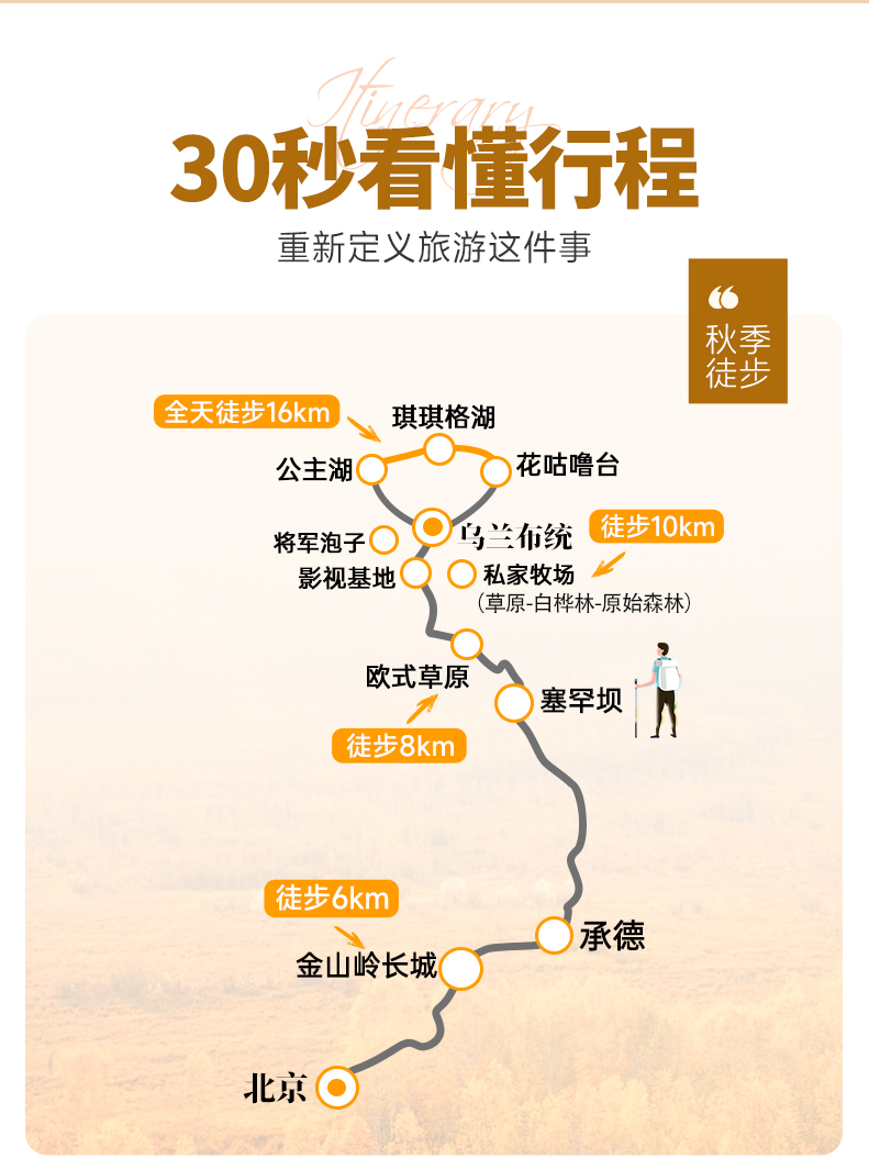 今日徒步行程结束后,我们随即乘车前往【承德】。晚上抵达时,我们将准备好【庆功晚宴】供大家享用。在旅途中成为好友,留住身边的美好!