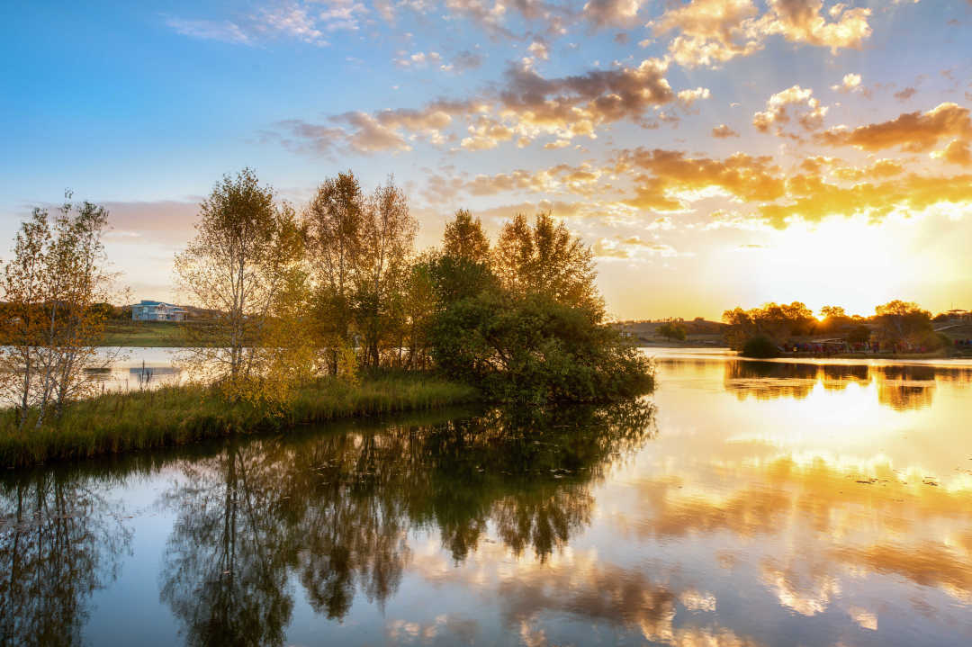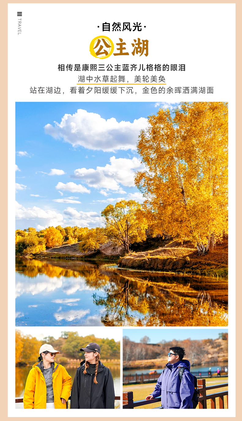 随后乘车前往“蓝齐儿眼泪”的坝上明珠【公主湖】,绿林环绕湖水,湖水清凉碧绿,似梵高的油画在人间,美不胜收。沿途牛羊悠闲、白桦错落,田园村落若隐若现,日落在暮色的柔光下更显惊艳。