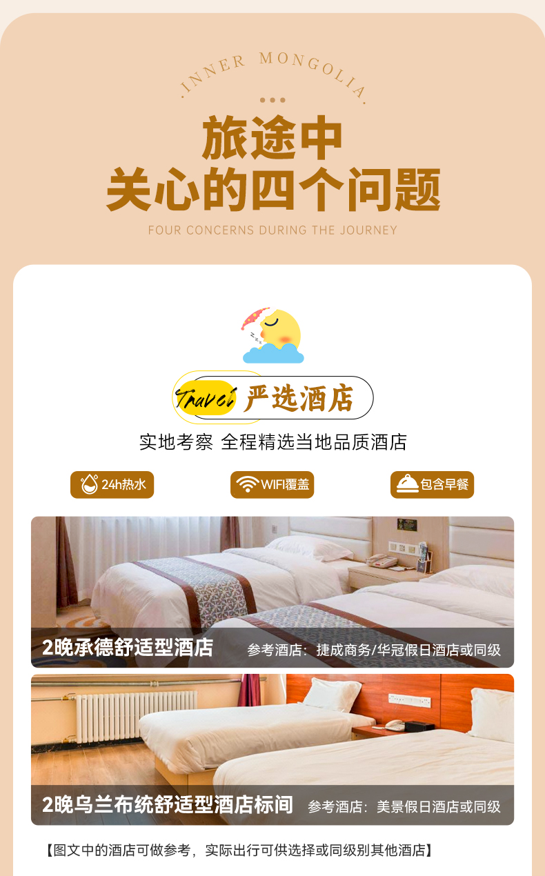 1、交通:北京出发及北京解散的全程专属用车及司机星级服务(含司机餐补、住宿)