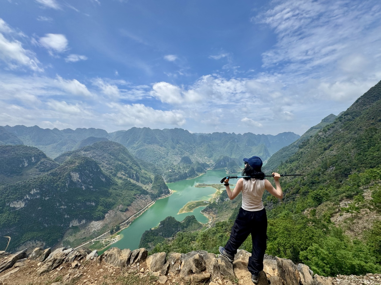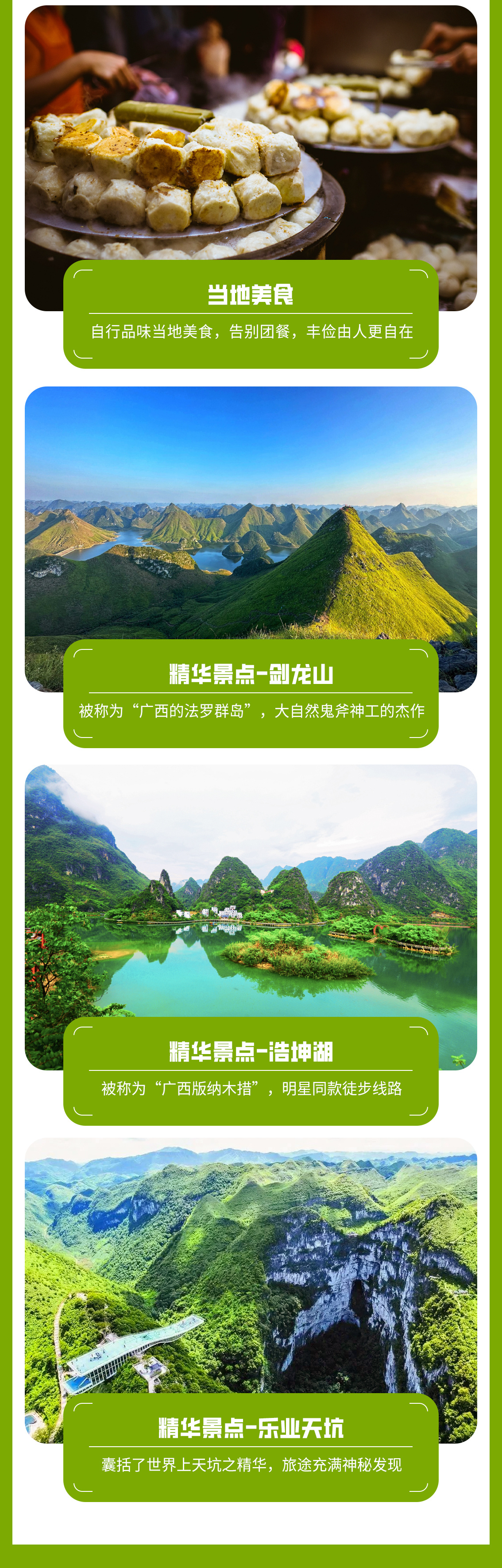 08:00早餐后出发,坐车1小时到达浩坤湖徒步起点,今天徒步网红浩坤湖环线,12公里,爬升500米,徒步6小时左右。中午也是路餐干粮。这里也是广西山水经典的徒步景色