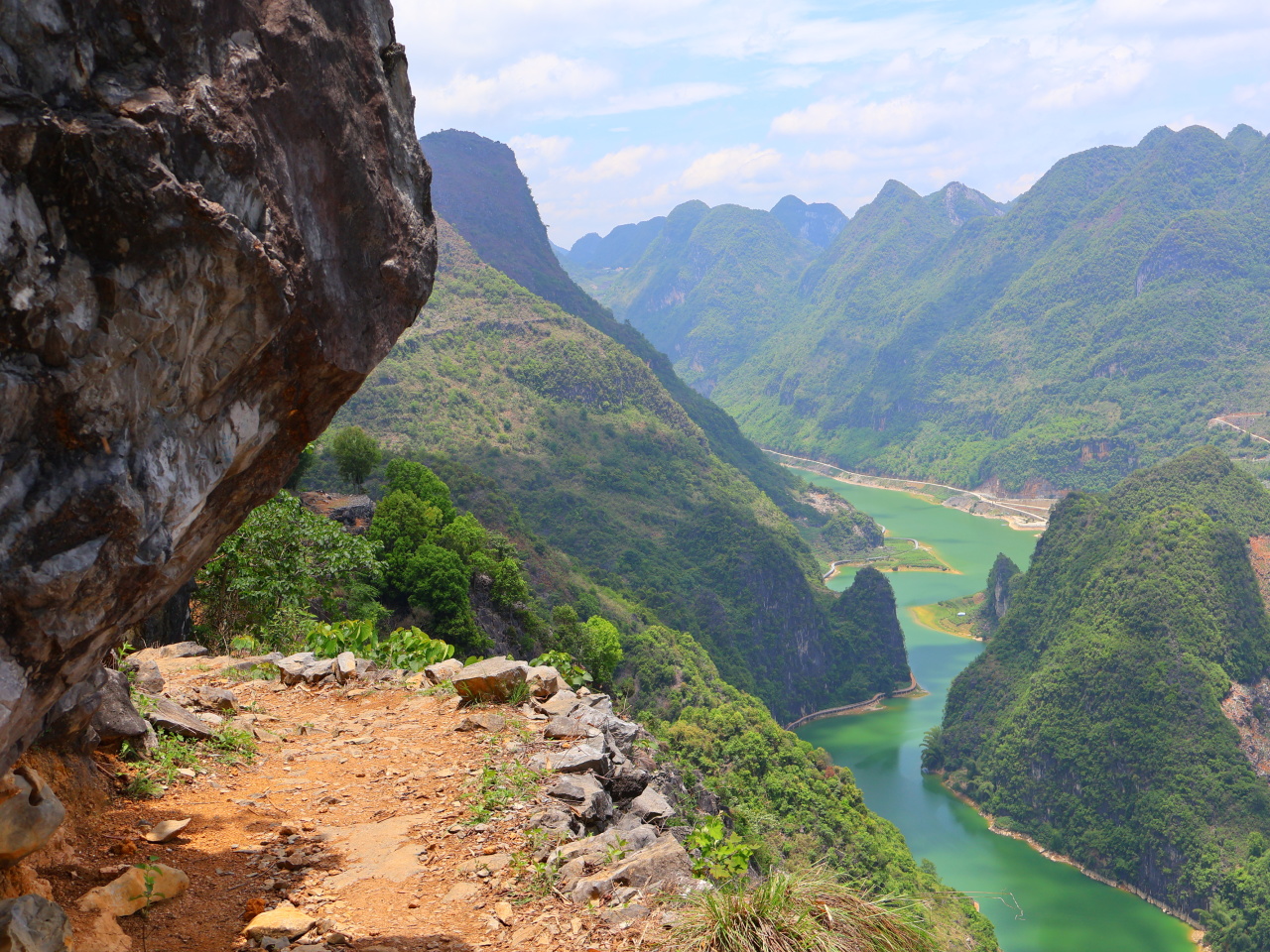 浩坤湖是凌云地区最大的一片水面,两岸山奇崖秀,丰水期里湖面宽阔,水质清澈。岛屿交错,水天一色。景区内还有几十座山峰紧紧夹携着一湖碧水,令人陶醉
