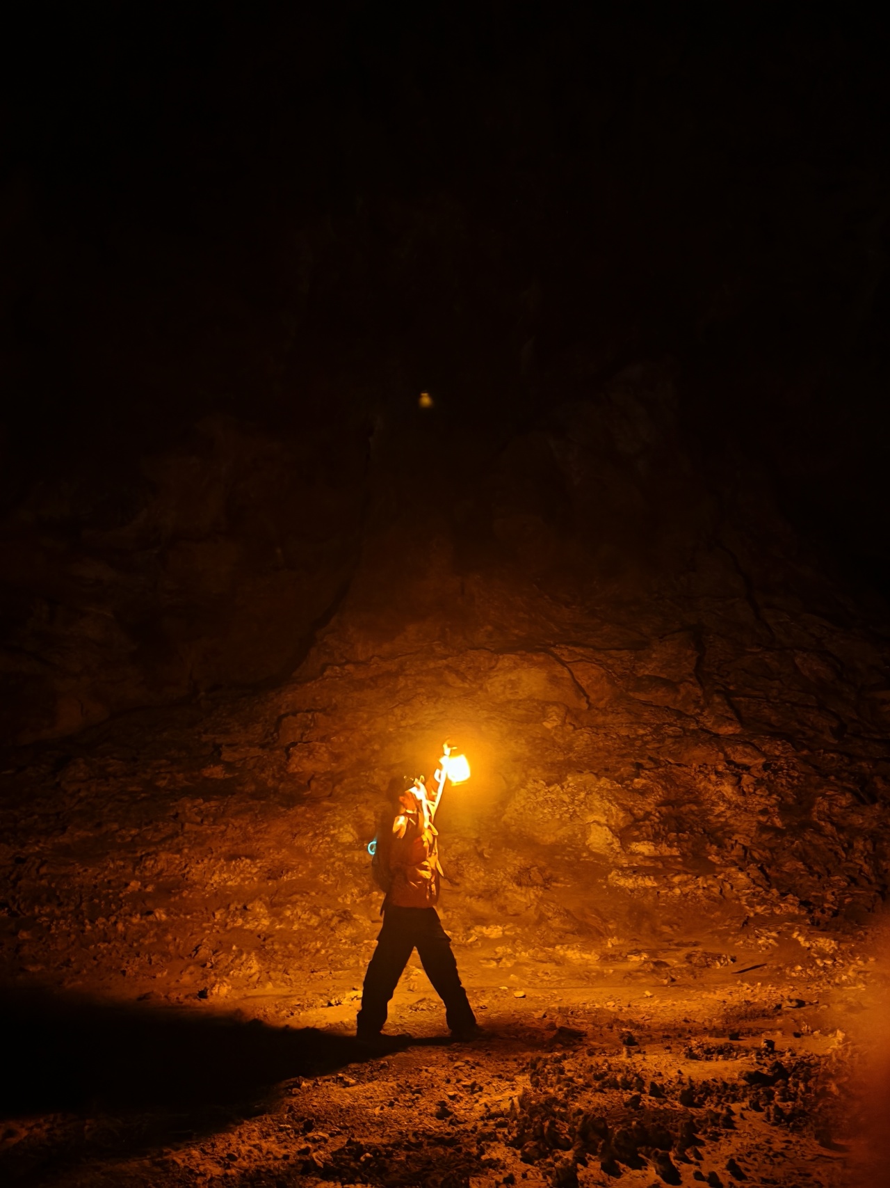 各种流石坝,美不胜收。溶洞里到处都石英砂晶石,用头灯一照,星光点点,如满天繁星
