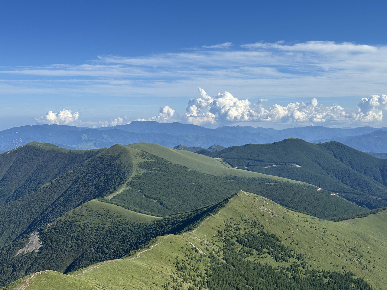 - 五台耸峙,雄踞华北屋脊,山峦叠嶂间尽显巍峨气势。