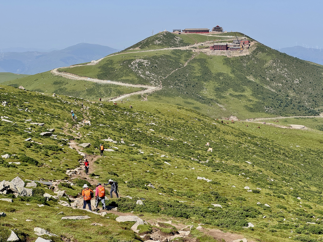 早餐后,乘坐区间车前往大南庄开始最后一个台的徒步。今天的行程从大南庄开始,沿途的风景真是美不胜收。大南庄到南台的大坡上,牧场、草地和群山环绕,仿佛置身于一幅山水画中。到达南台后开始下山,到达山脚公路乘车返回太原,大约16点左右到达太原市区。