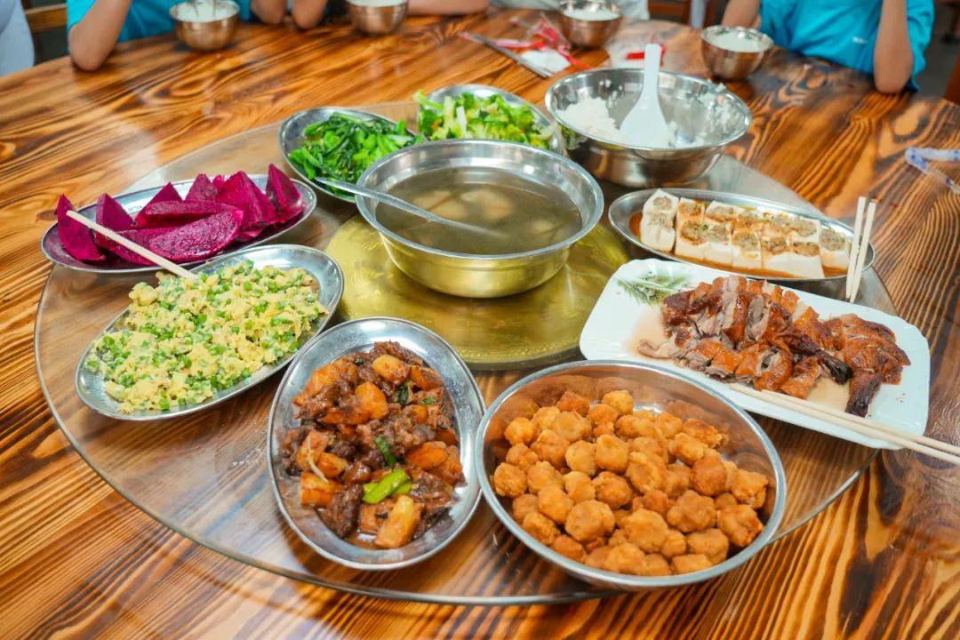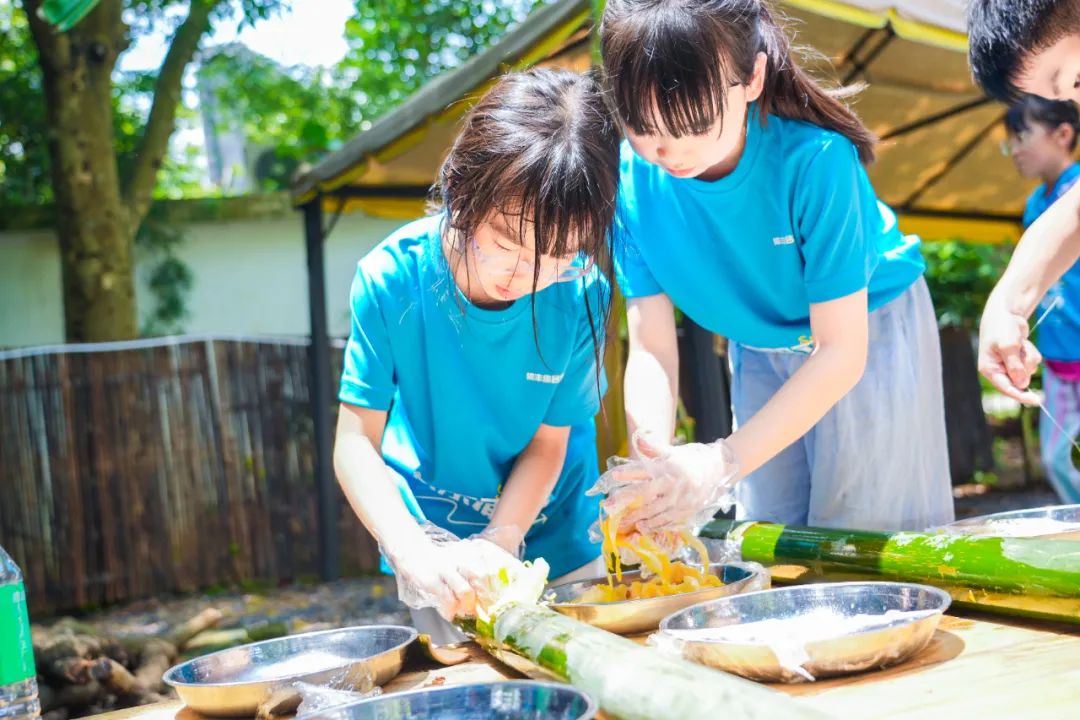 统一营地用餐,均由专业餐饮团队打造营养餐品,注重用餐方式多元化,包含围餐、竹筒饭等,新鲜蔬菜、肉类每日直供,保证孩子们的营养摄入均衡。