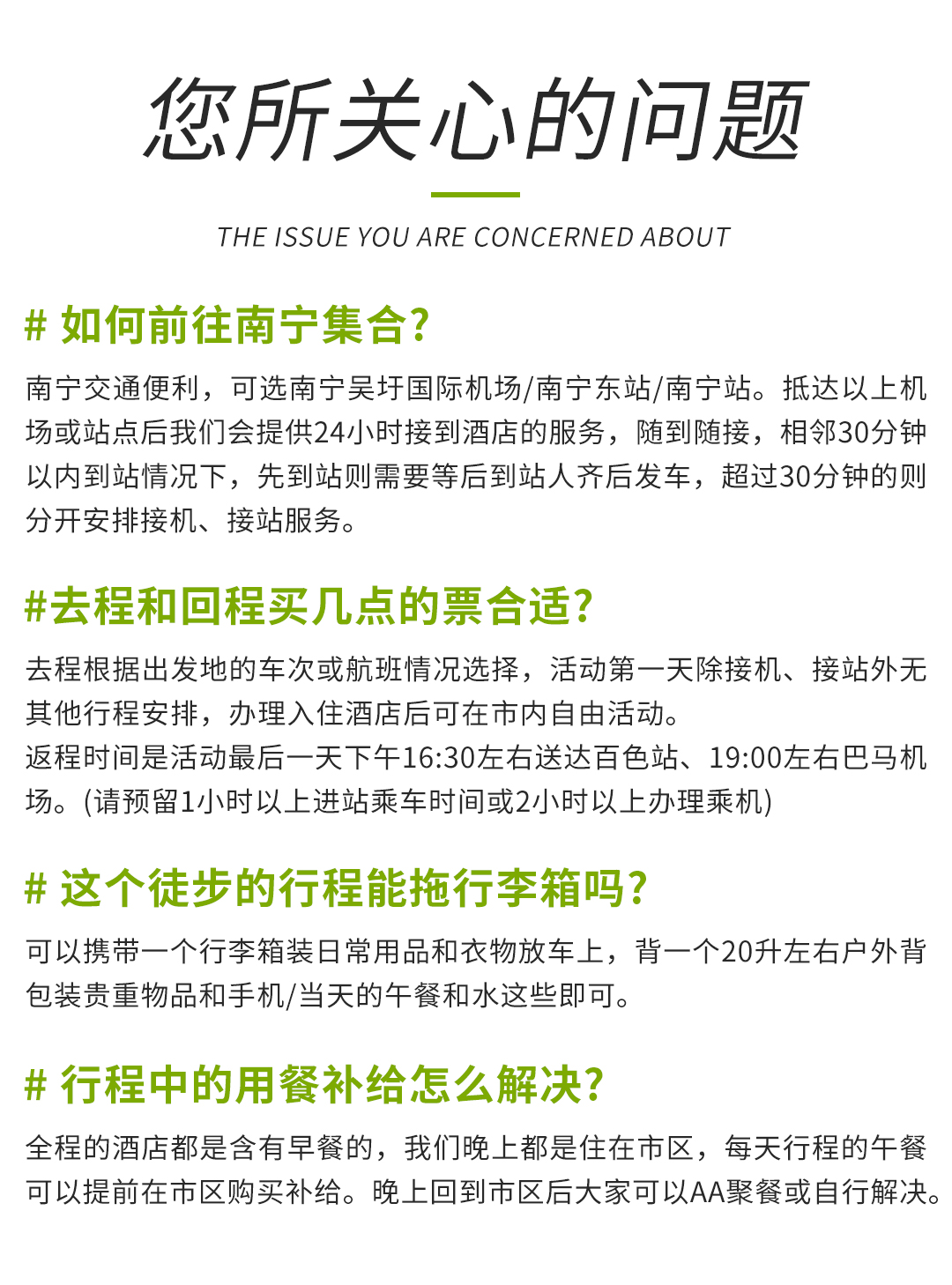 ① 广西南宁是交通枢纽中心,各地直达航班、高铁动车、火车交通便利,可根据个人需求结合出发地的车次、航班购买。