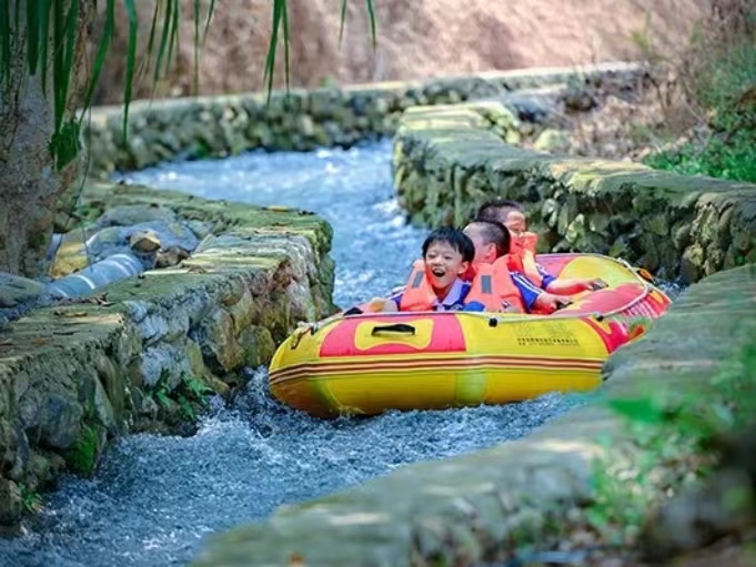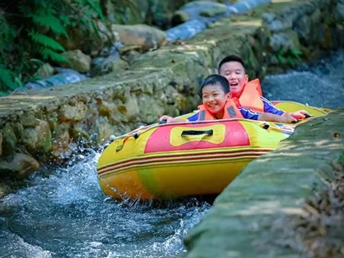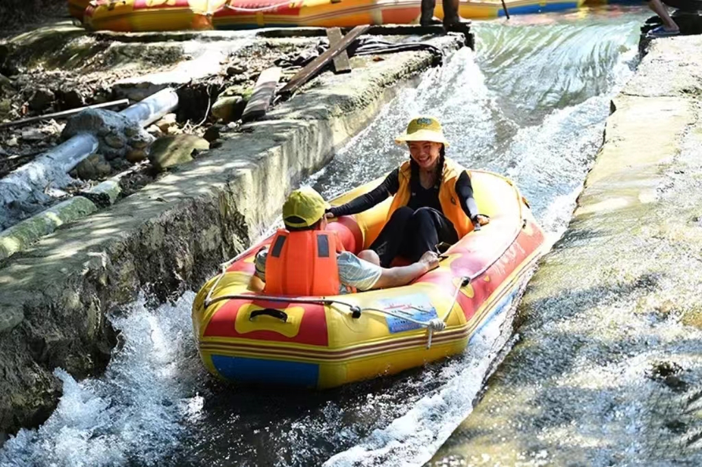 漂流全长约1公里,依山而建,在山林间穿梭迂回,时而急时而缓,跟随水流的节奏上下起伏,不觉间在惊呼声中度过了新奇刺激的时光。在这里来一场森林漂流记,这条漂流路线比较平缓,非常亲子家庭玩乐。