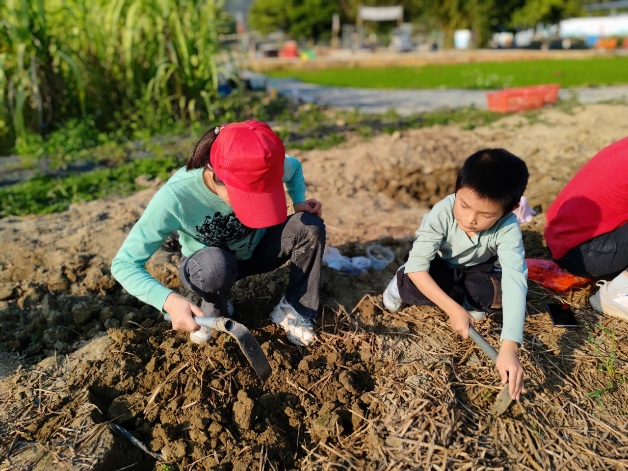 亲身体验挖“马蹄”的乐趣。挥舞着铲子,拿起小铁锹,挖更多的马蹄!大个的马蹄都是埋在下面的哦!