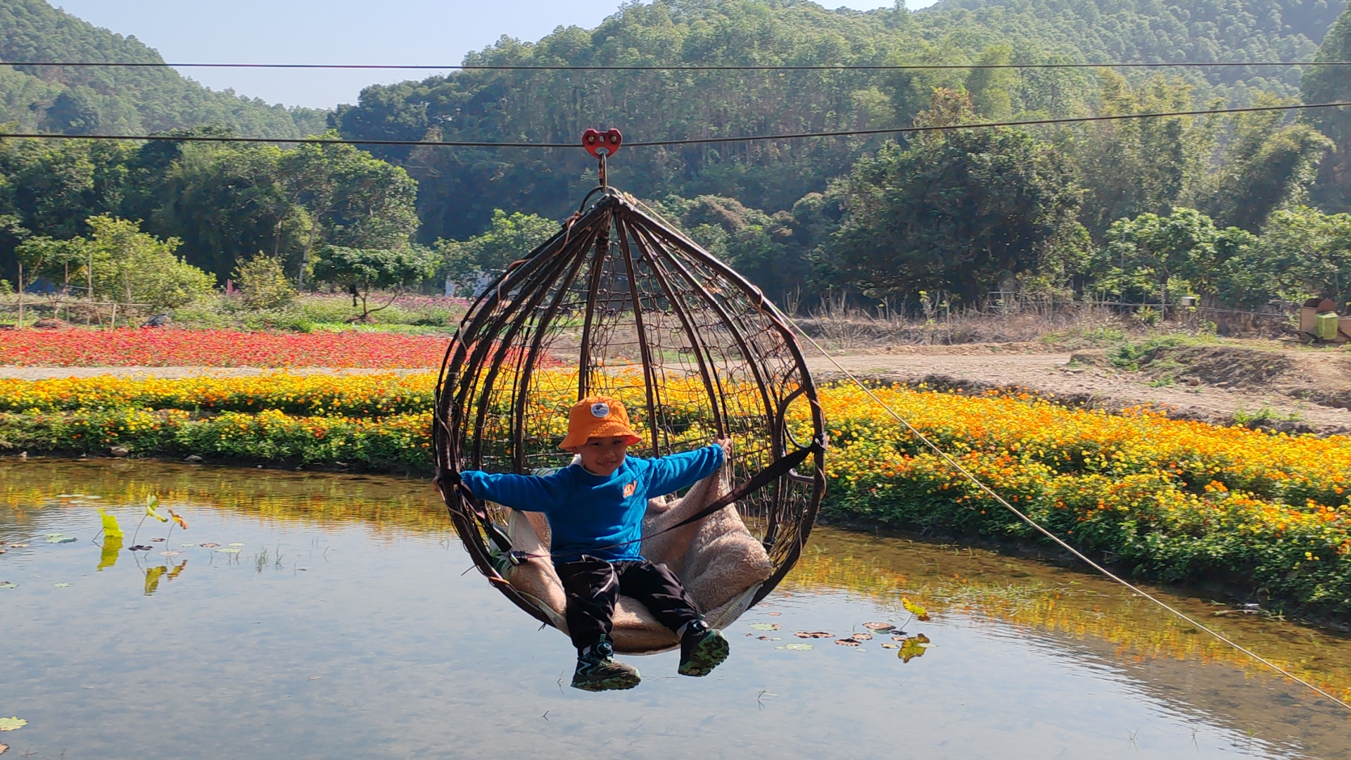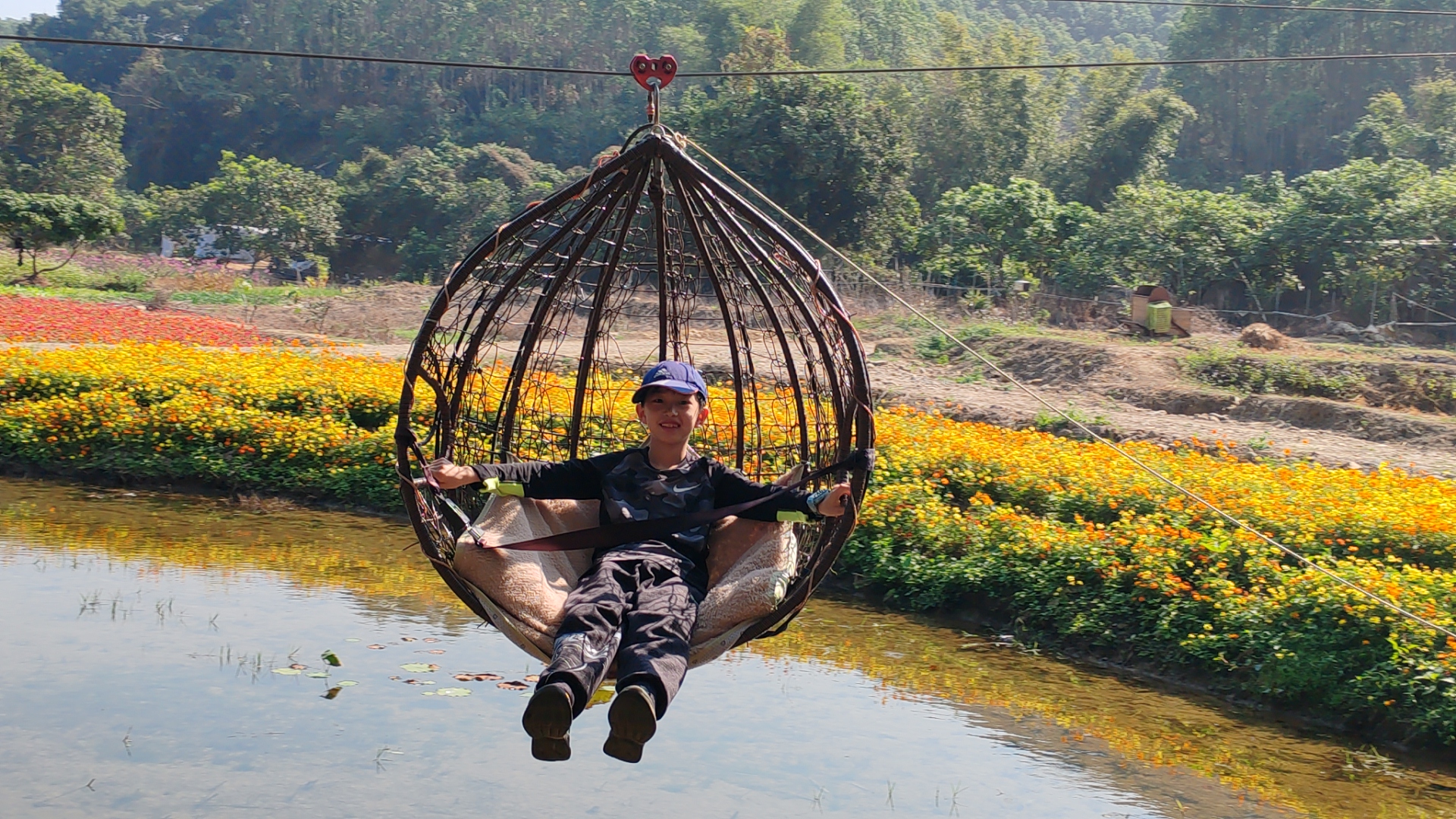 这是一条约50米长的索道,做好安全措施,从绳子的一端飞向另一端,实现孩子童年最渴望的“飞行”梦!