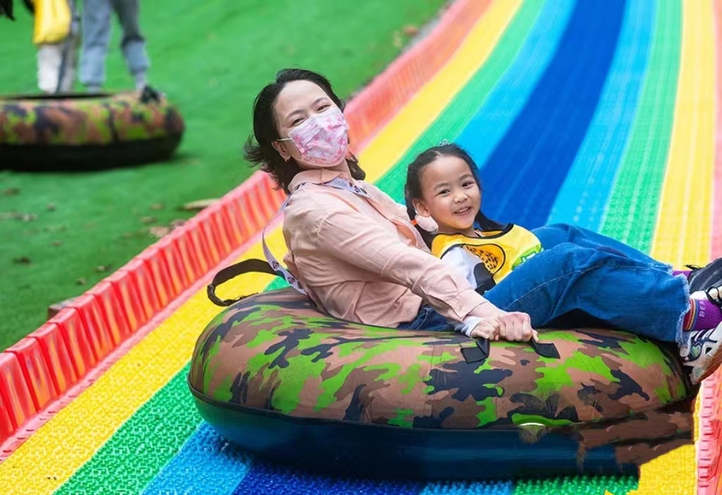 体验带着孩子体验从云端飞驰而下的畅快淋漓!五彩斑斓的滑道,宛如鲜艳的彩虹从高处倾泻而下,体验一滑到底的速度与激情!