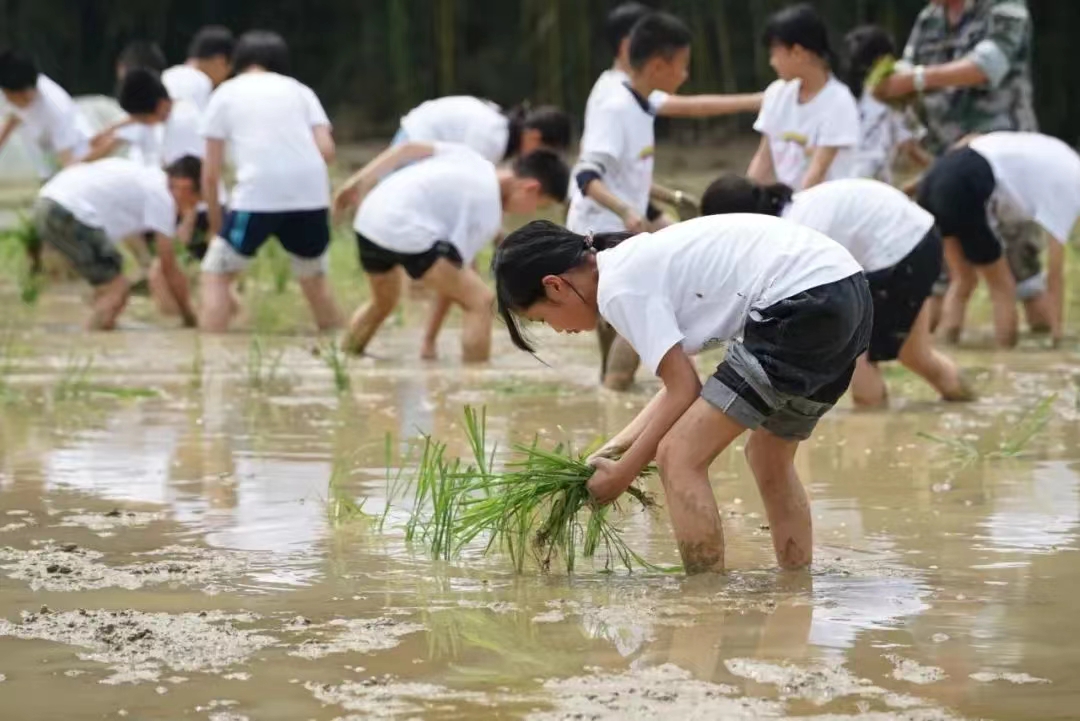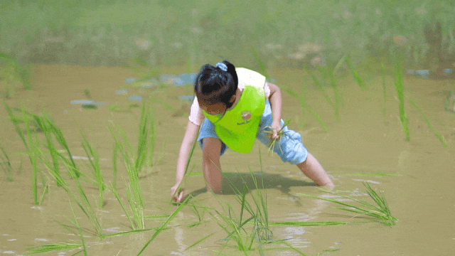 亲手种下一株秧苗是什么体验?双脚踩进泥土里又是哪种感觉?孩子们赤脚下田,滑软的泥土那般柔润,踩下去把握不住力道就难拔出来了。