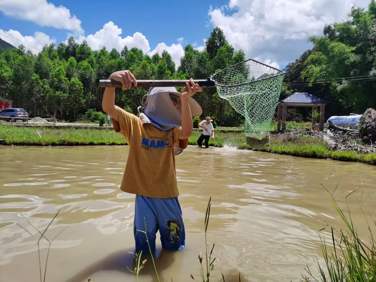 卷起裤腿,踩进凉飕飕的浑水池塘,水花“啪嗒啪嗒”溅起来,瞬间开启快乐模式!