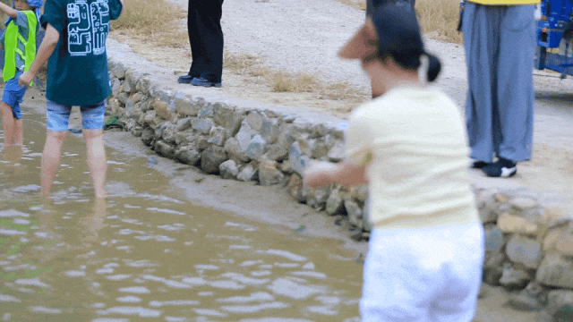 清澈的小溪,潺潺流水,在城市森林中是多么宝贵的资源,在大自然里放飞的心情已经无法抑制,那就扑进溪流里,来一场打水仗的狂欢吧!