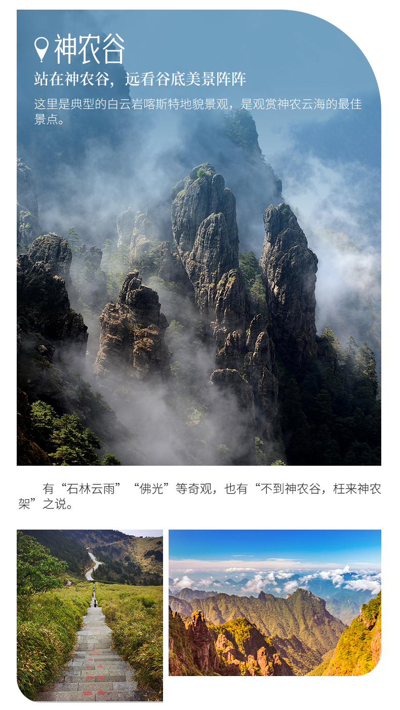 由于神农顶天气变化很大,领队会根据景区实际状况,灵活调整神农顶行程顺序和景点,最大保证游玩体验。