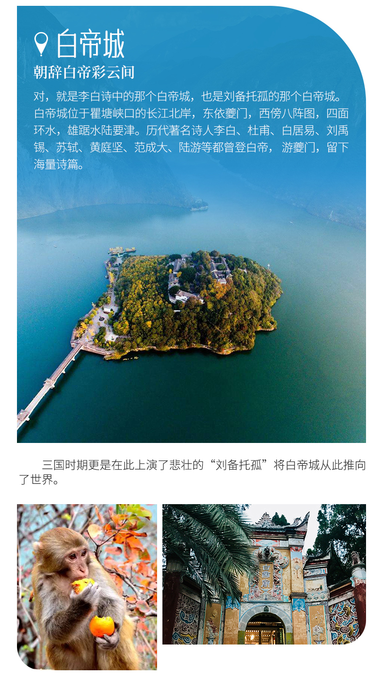 三峡之巅,地处长江三峡之首,因杜甫“赤甲白盐俱刺天,闾阎缭绕接山巅。枫林橘树丹青合,复道重楼锦绣悬”的诗句而得名,是长江三峡物理形态的最高处,景观形态的最美处。