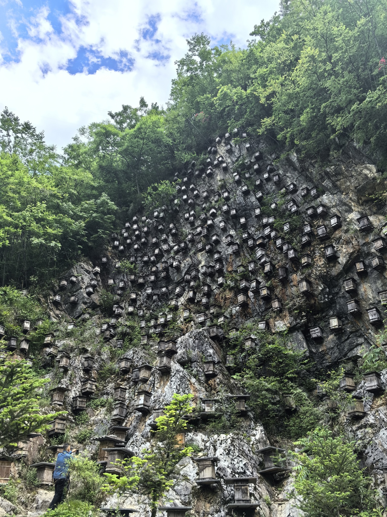 官门山物种丰富、山险林奇、山水相映、环谷幽深,以探索与发现为主题的科考、科研、科普体验区,全长8公里的长峡集中分布亚热带到寒温带的植物物种2500余种。我们主要观赏网红景点【岩壁蜂巢】,以及【熊猫馆】观赏熊猫“奥运”和“韵韵”。