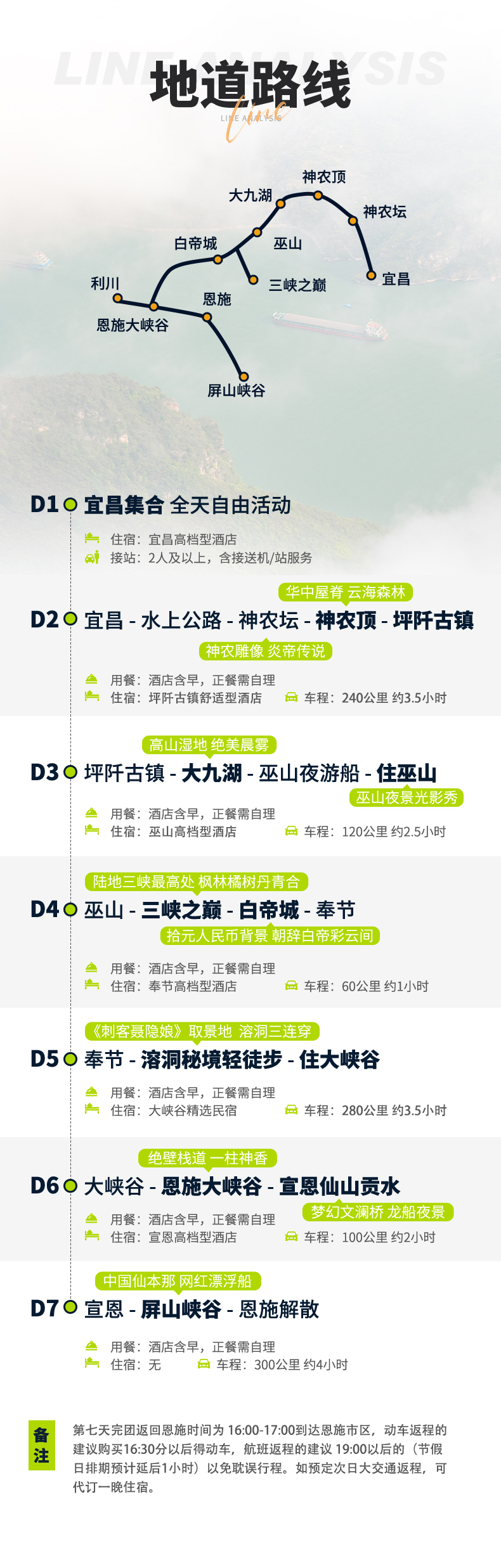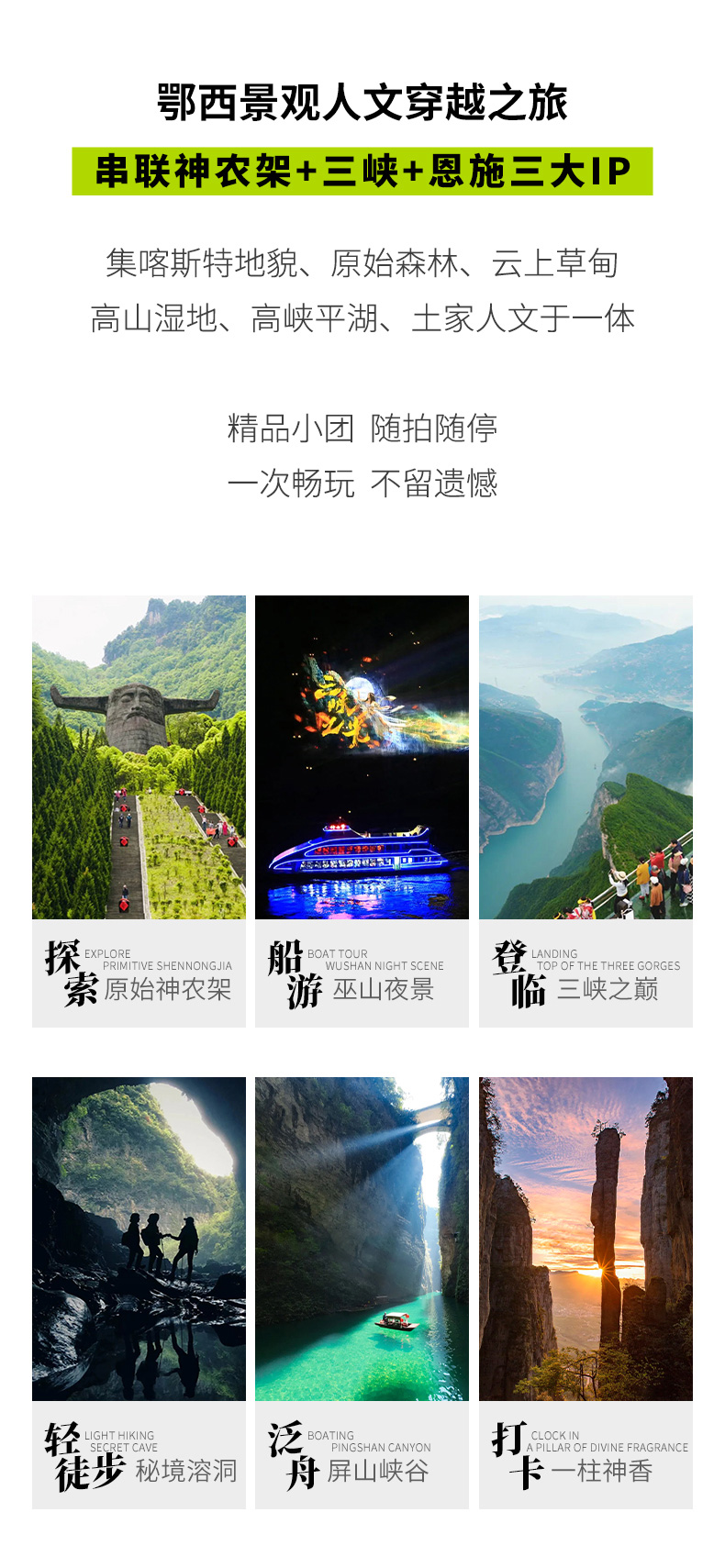 后乘车返回恩施,领队会将大家送到恩施机场和恩施火车站。预计18:00到达,建议预定19:00以后的机票和火车票(旺季及节假日排期预计延后1小时,以免耽误行程),如预定次日大交通返程,可提供代订住宿服务。