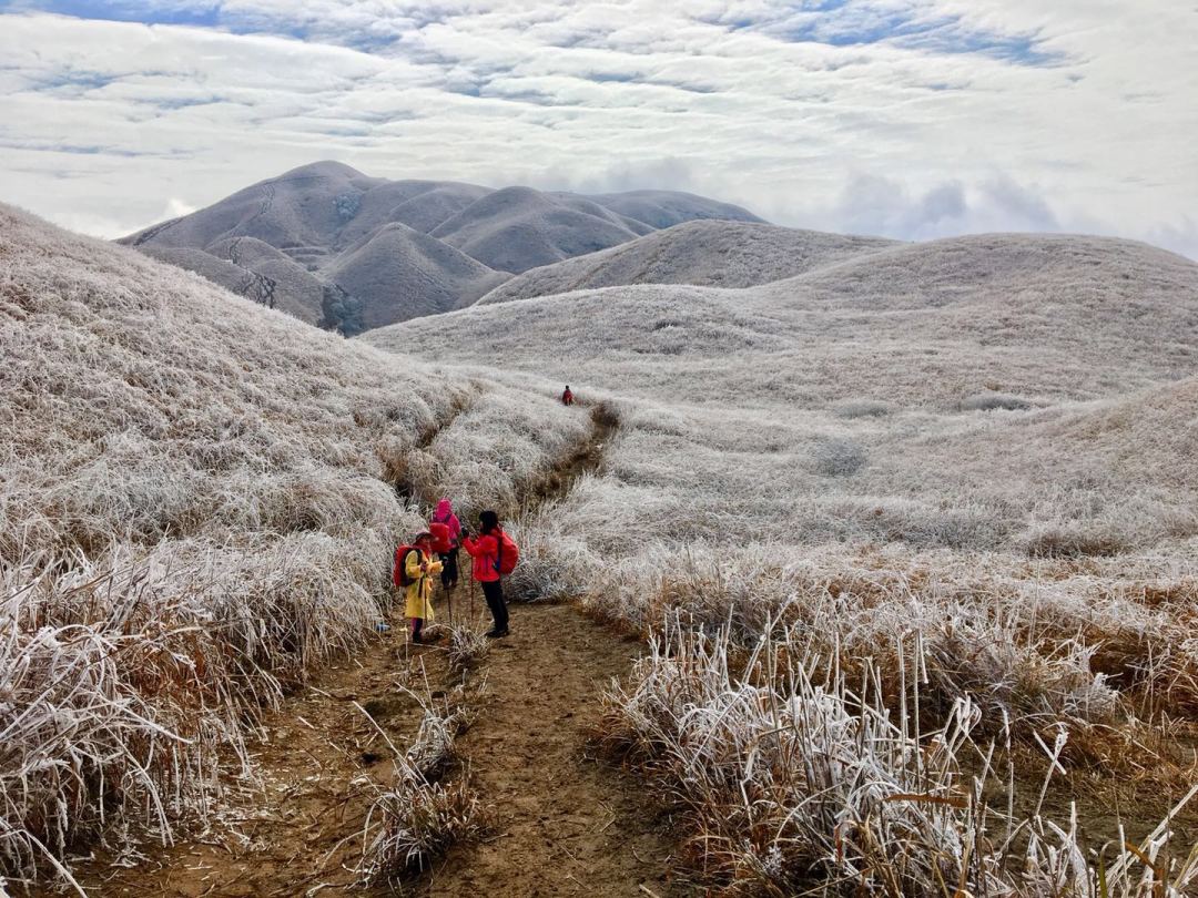 10:30-12:30 这个时间段沿着山脊行走,沿路漫山的草甸,十分迷人,会让你有一种置身梦幻的感觉。
