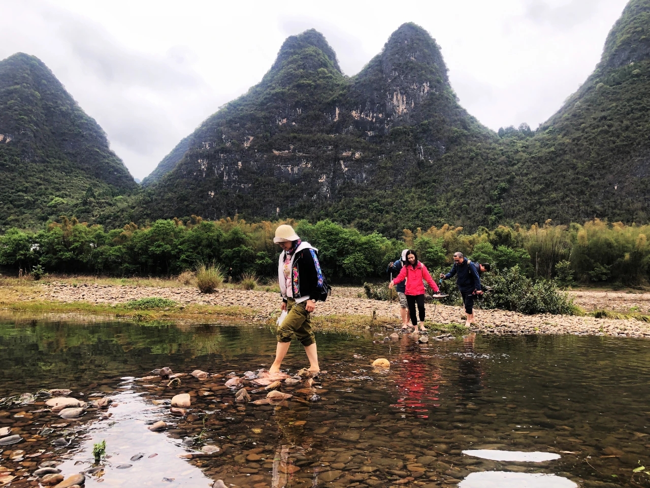 13:30 再次出发徒步漓江,到达冷水渡码头(需自费坐船过渡10元)。