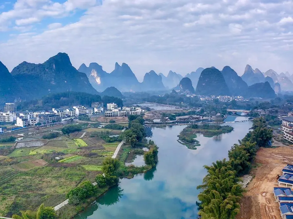 世界著名的漓江蜿蜒流于该镇西南部,境内江段长达20多公里,两岸群峰连绵。
