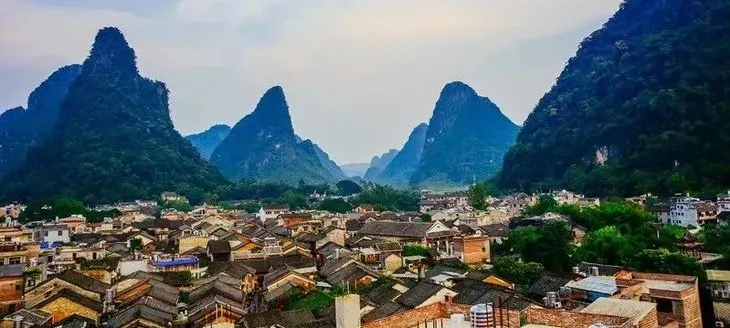 兴坪古镇,漓江上一颗璀璨的明珠,具有1700多年历史,古建筑大部分保存完好,呈现出一派青山幽幽、村舍几座的肃静氛围。