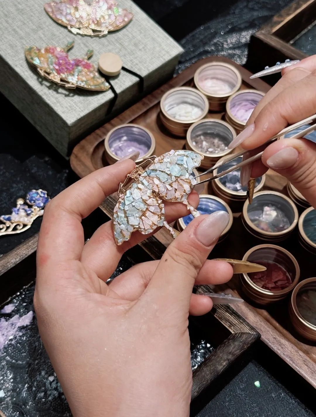 螺钿以其细腻的雕刻技艺和丰富的色彩层次而闻名。工艺通过对贝壳、珍珠母贝等为原料进行加工,经过精细的切割、打磨和镶嵌等工序,镶嵌到工艺品表面,