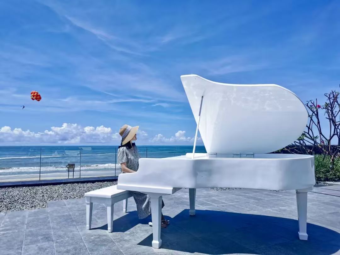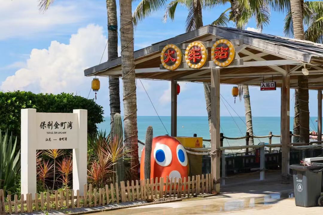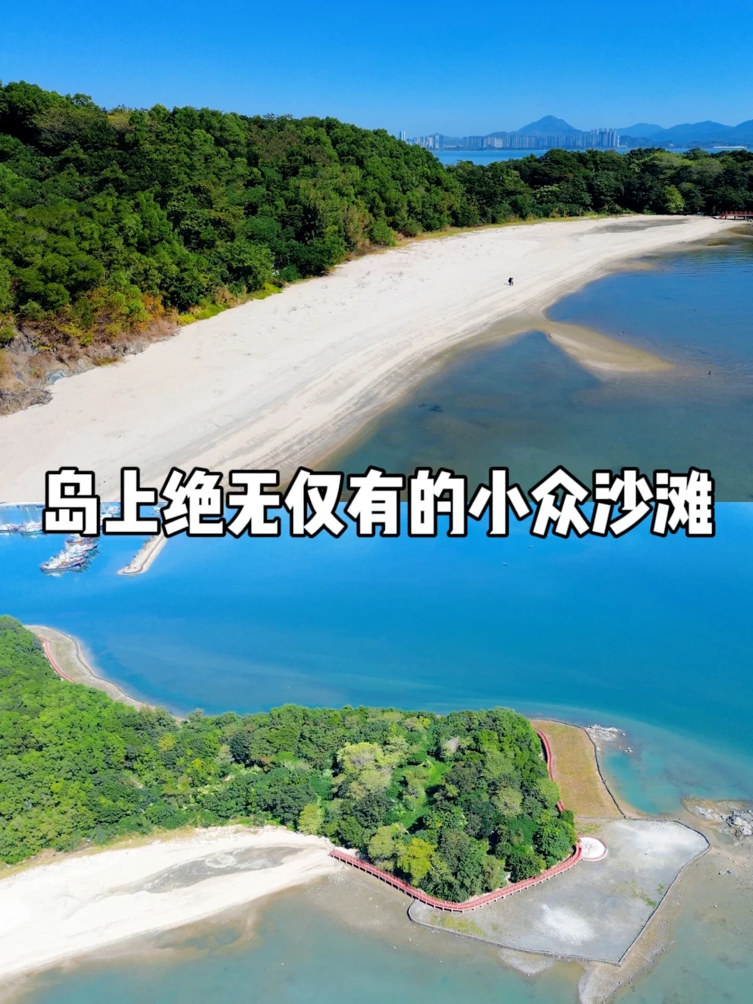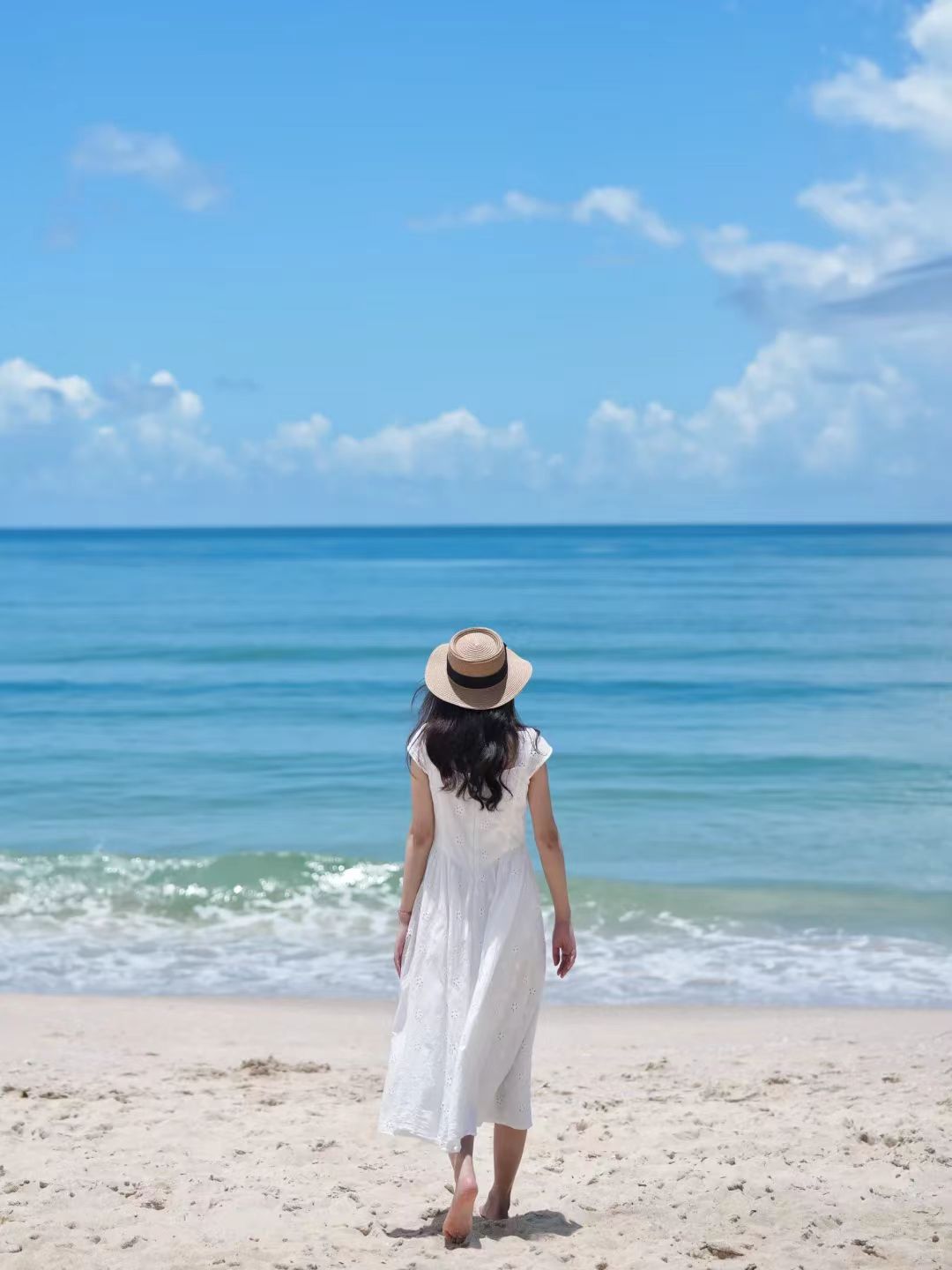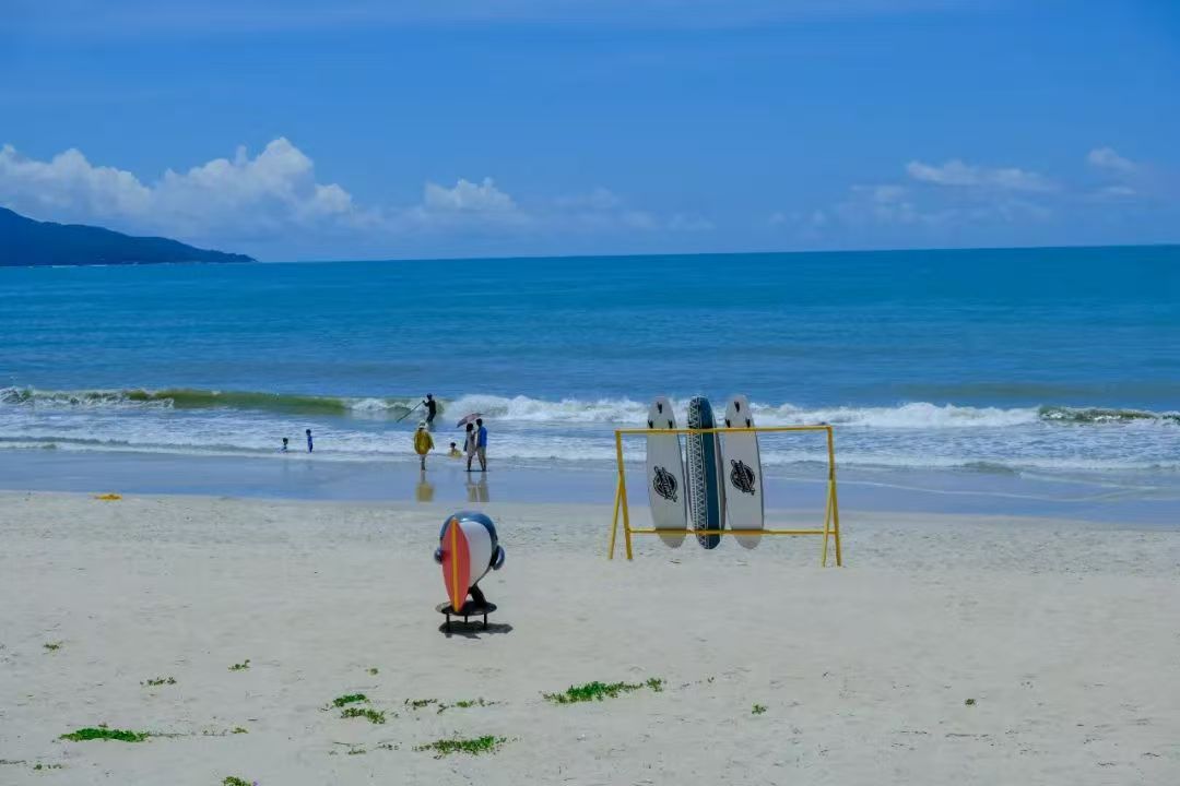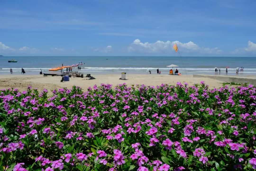 波光粼粼的海面与远处的天空连成一片,宝藏的沙滩和湛蓝的大海一眼让人心动。